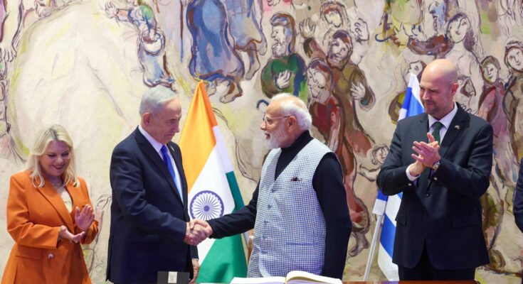 प्रधानमंत्री नरेंद्र मोदी का इजराइल के प्रधानमंत्री नेतन्याहू ने भव्य स्वागत किया