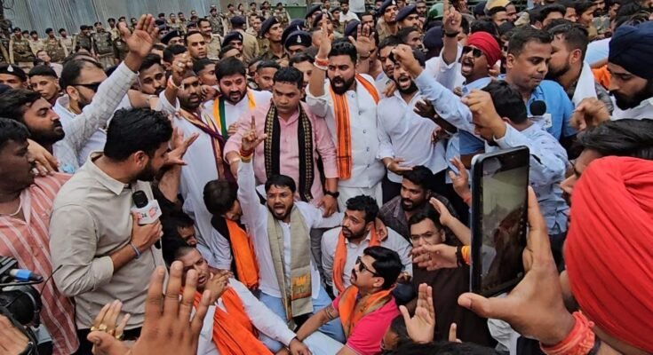 छत्तीसगढ़: भाजयुमो ने किया कांग्रेस कार्यालय राजीव भवन का घेराव