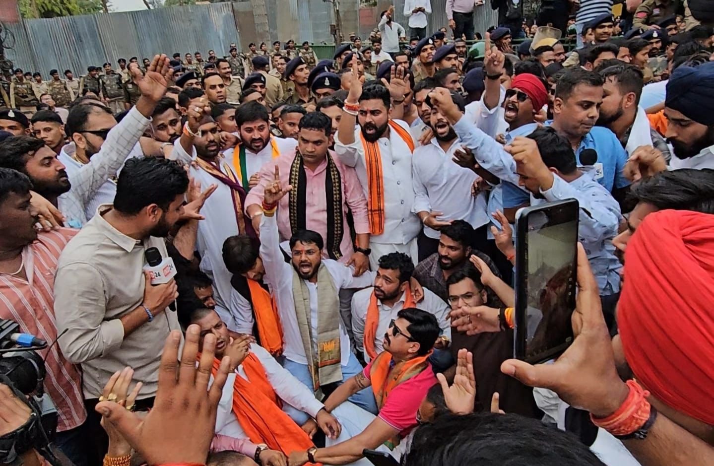 लगभग 2 हजार की संख्या में पहुंचे भाजयुमो कार्यकर्ताओं ने लगाए कांग्रेस पार्टी मुर्दाबाद, राहुल गांधी मुर्दाबाद के नारे