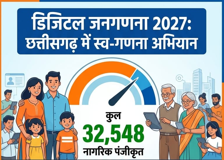 डिजिटल जनगणना 2027: छत्तीसगढ़ में32,548 नागरिक पोर्टल पर पंजीकृत
