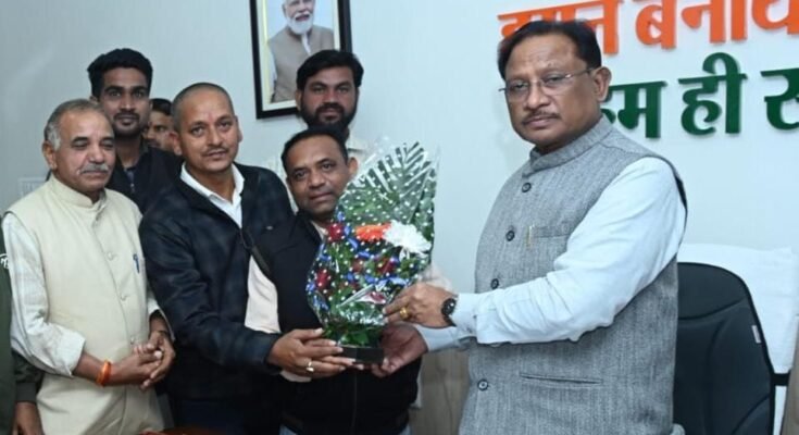 रायपुर। मुख्यमंत्री विष्णु देव साय से राजधानी रायपुर स्थित मुख्यमंत्री निवास कार्यालय में छत्तीसगढ़ कुंभकार समाज के प्रतिनिधि मंडल ने सौजन्य भेंट की। प्रतिनिधि मंडल ने मुख्यमंत्री श्री साय को आगामी जनवरी 2025 में रायपुर जिले के ग्राम नवागांव (कोलियारी) में आयोजित होने वाले प्रदेश स्तरीय महाधिवेशन में मुख्य अतिथि के रूप में शामिल होने हेतु आमंत्रित किया।