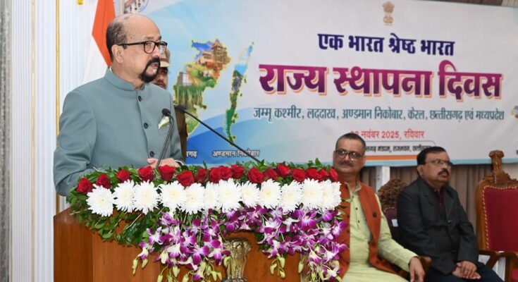 रायपुर। राज्यपाल रमेन डेका के मुख्य आतिथ्य में रविवार को राजभवन में 6 राज्यों एवं केंद्र शासित प्रदेशों का स्थापना दिवस मनाया गया। इस अवसर पर श्री डेका ने कहा कि भारत की आत्मा उसकी विविधता में बसती है और यही हमारी सबसे बड़ी ताकत है। प्रधानमंत्री नरेंद्र मोदी की प्रेरणा से प्रारंभ हुआ ‘एक भारत श्रेष्ठ भारत’ अभियान इसी एकता और सांस्कृतिक समृद्धि का सशक्त प्रतीक है।