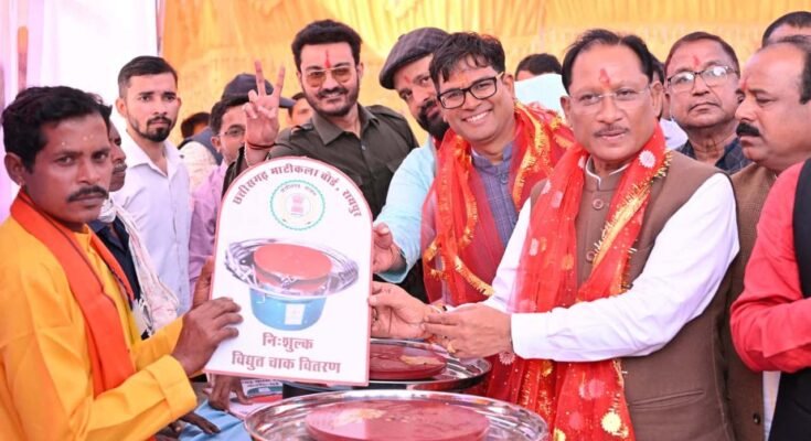 मुख्यमंत्री श्री साय ने कहा कि छत्तीसगढ़ माटी कला बोर्ड के माध्यम से इलेक्ट्रॉनिक चाक (इलेक्ट्रिक पॉटर व्हील) का वितरण किया जा रहा है, जिससे मेहनत कम होगी, उत्पादन क्षमता बढ़ेगी और उत्पादों को बेहतर फिनिशिंग मिलेगी। इससे बाजार में ऊँचा मूल्य मिलेगा और वर्षभर स्थिर आमदनी सुनिश्चित होगी। उन्होंने कहा कि कारीगरों के प्रशिक्षण के लिए नई डिजाइन, आधुनिक तकनीक और उद्यमिता से संबंधित प्रशिक्षण कार्यक्रम भी संचालित किए जा रहे हैं। हमारी सरकार कुम्हारों को वित्तीय सहायता भी प्रदान कर रही है, जिससे आप नए उपकरण खरीदकर अपने व्यवसाय का विस्तार कर सकें। मार्केटिंग के लिए मेलों, प्रदर्शनियों और ऑनलाइन प्लेटफ़ॉर्म्स का उपयोग बढ़ाया जा रहा है, जिससे आपकी कला पूरे देश में ही नहीं, बल्कि विदेशों तक पहुँच सके। उन्होंने छत्तीसगढ़ की माटी कला को वैश्विक स्तर पर स्थापित करने की अपील की।